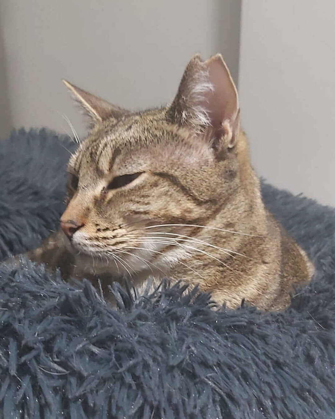 Meyer en general es una gatita un poco desconfiada e independiente, necesita un tiempo para adaptarse a caras nuevas, pero cuando tiene la suficiente confianza es una gata magnífica y cariñosa, que duerme junto a las personas. Con el resto de gatos no tiene mayores problemas, y también es adaptable a perros (siempre que no sean super activos).